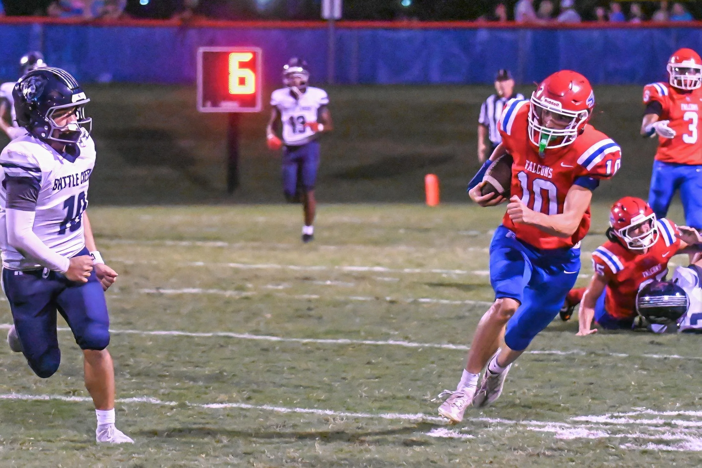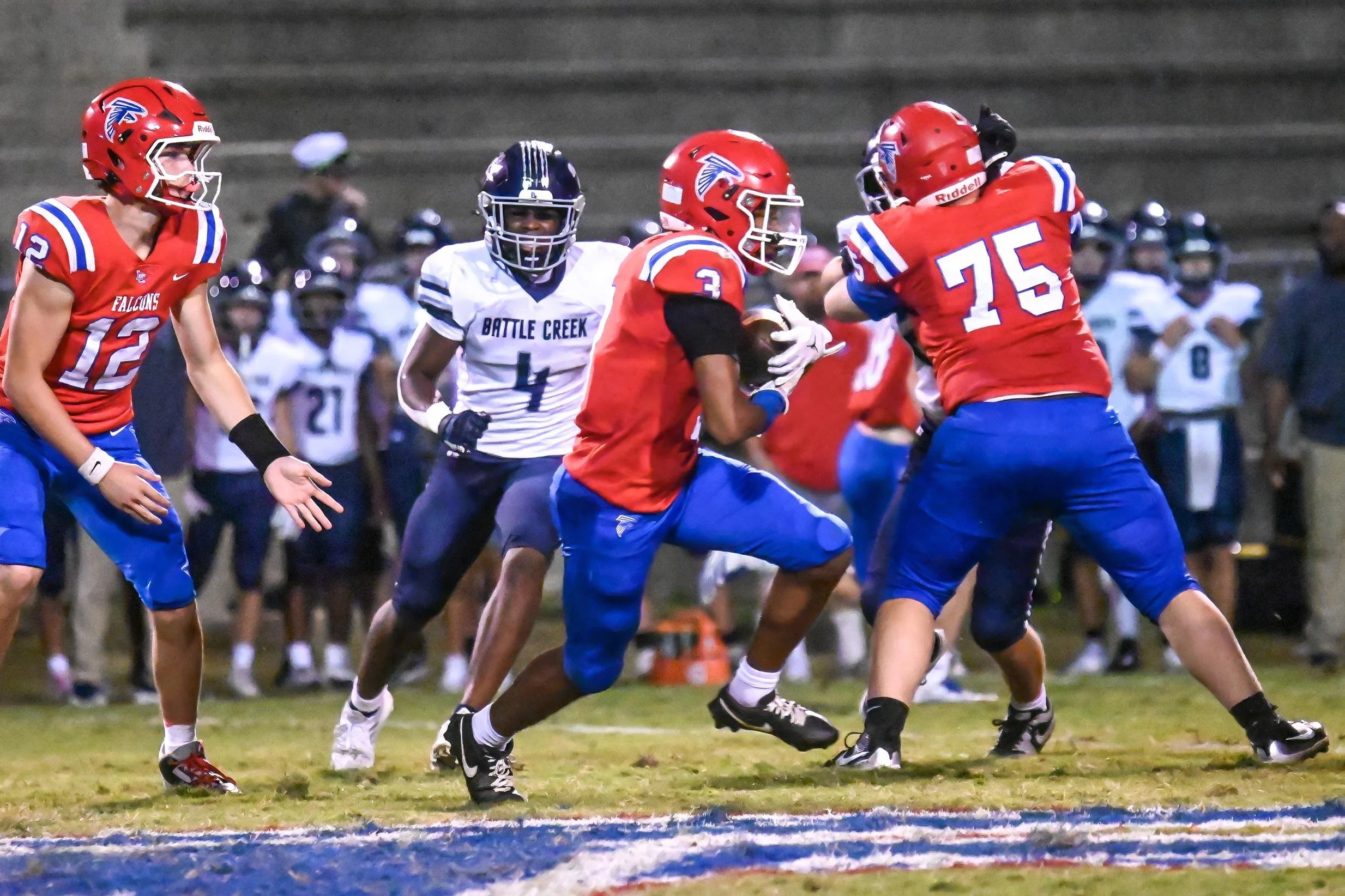 The Falcons get a 49-0 Homecoming win over Battle Creek