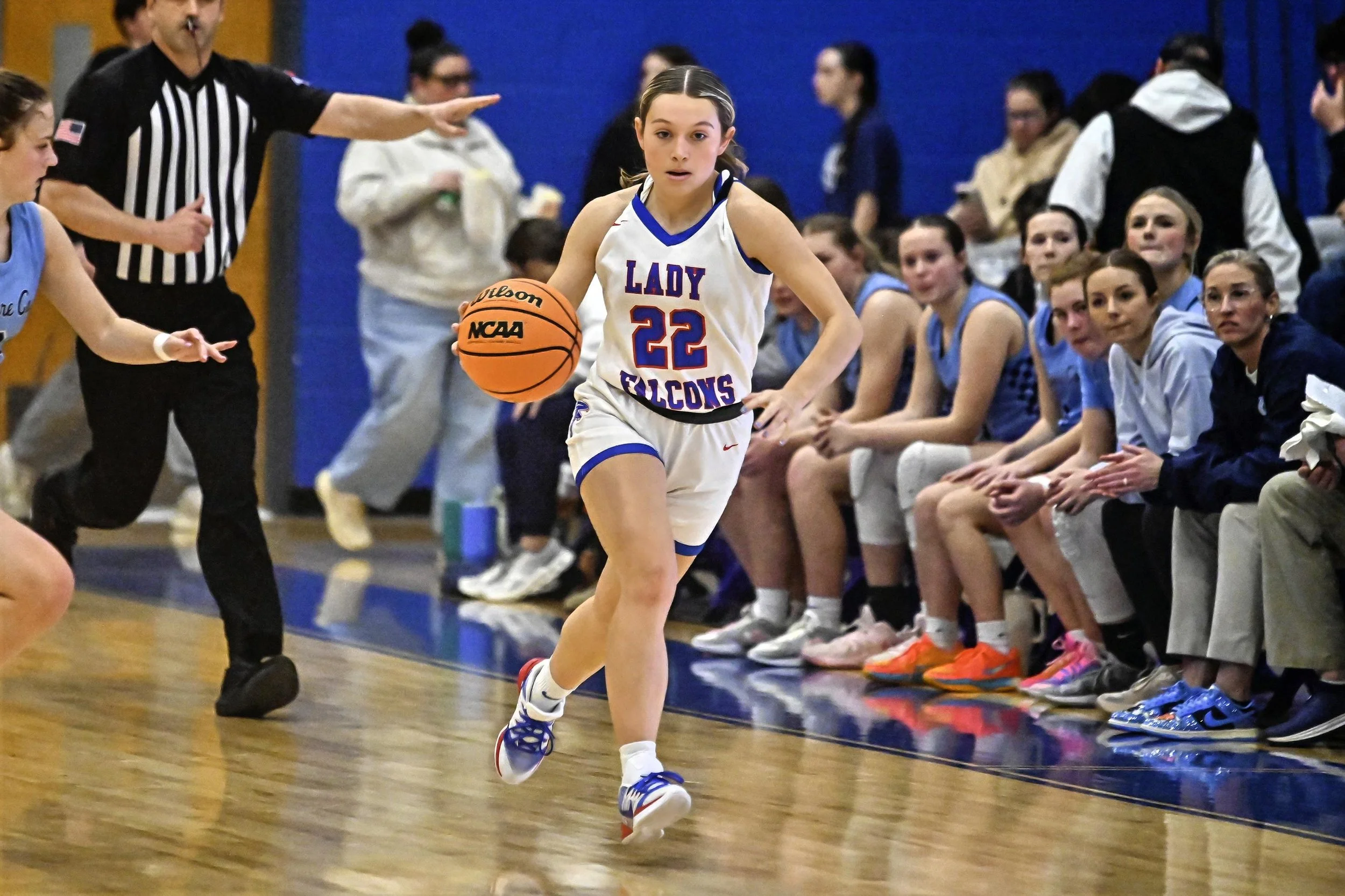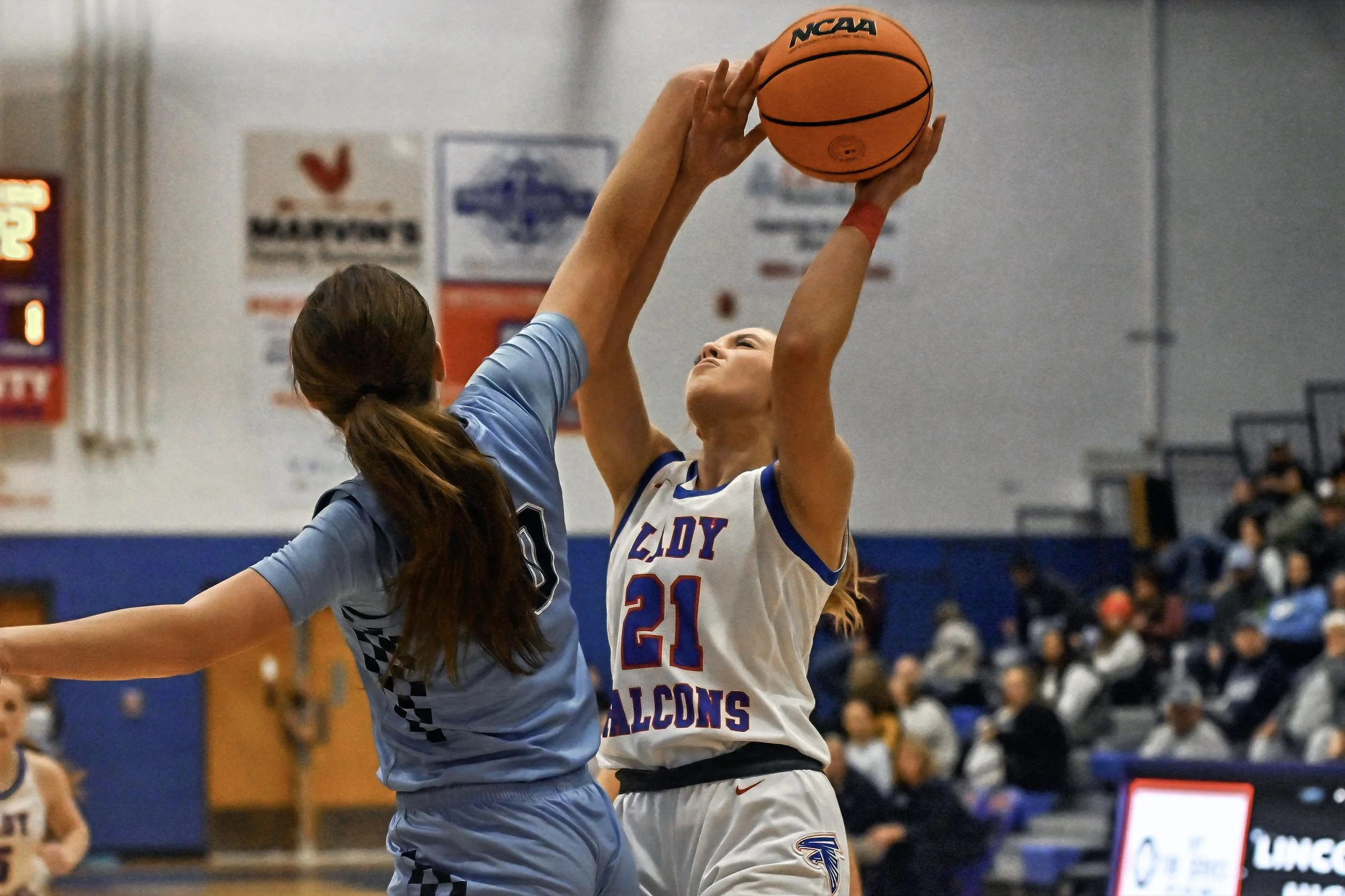 Lady Falcons go down to Moore Co. 41- 56.